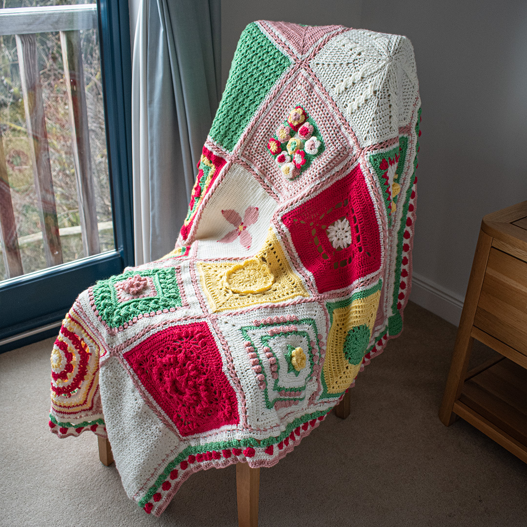 Every week we will release 3 squares for you to make. They will all measure 10″ (once finished and blocked if necessary) and in total there are 20 squares … I took onboard the feedback that last year with 41 squares it was a little long for some of you! As per last year, there is a variety of stitches and techniques so there should be something new for most of you during this CAL.