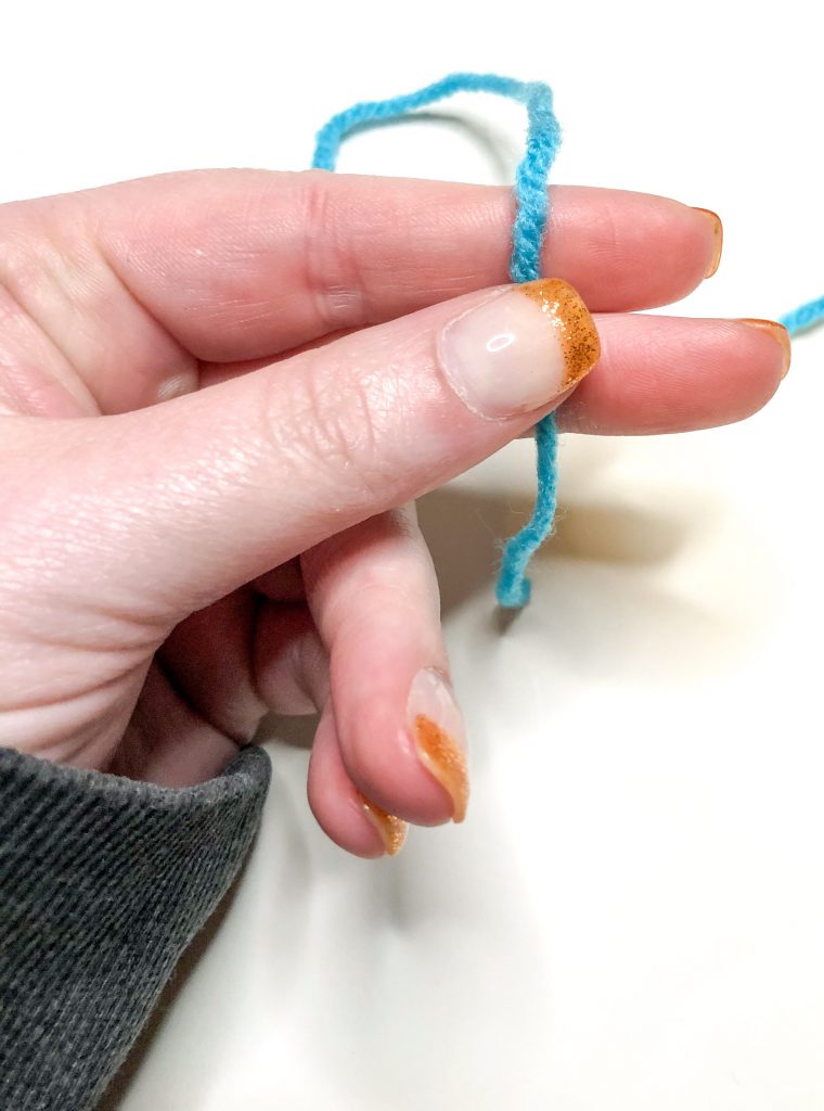 6. Hold the yarn in place with your ring finger pressed up against your middle finger.