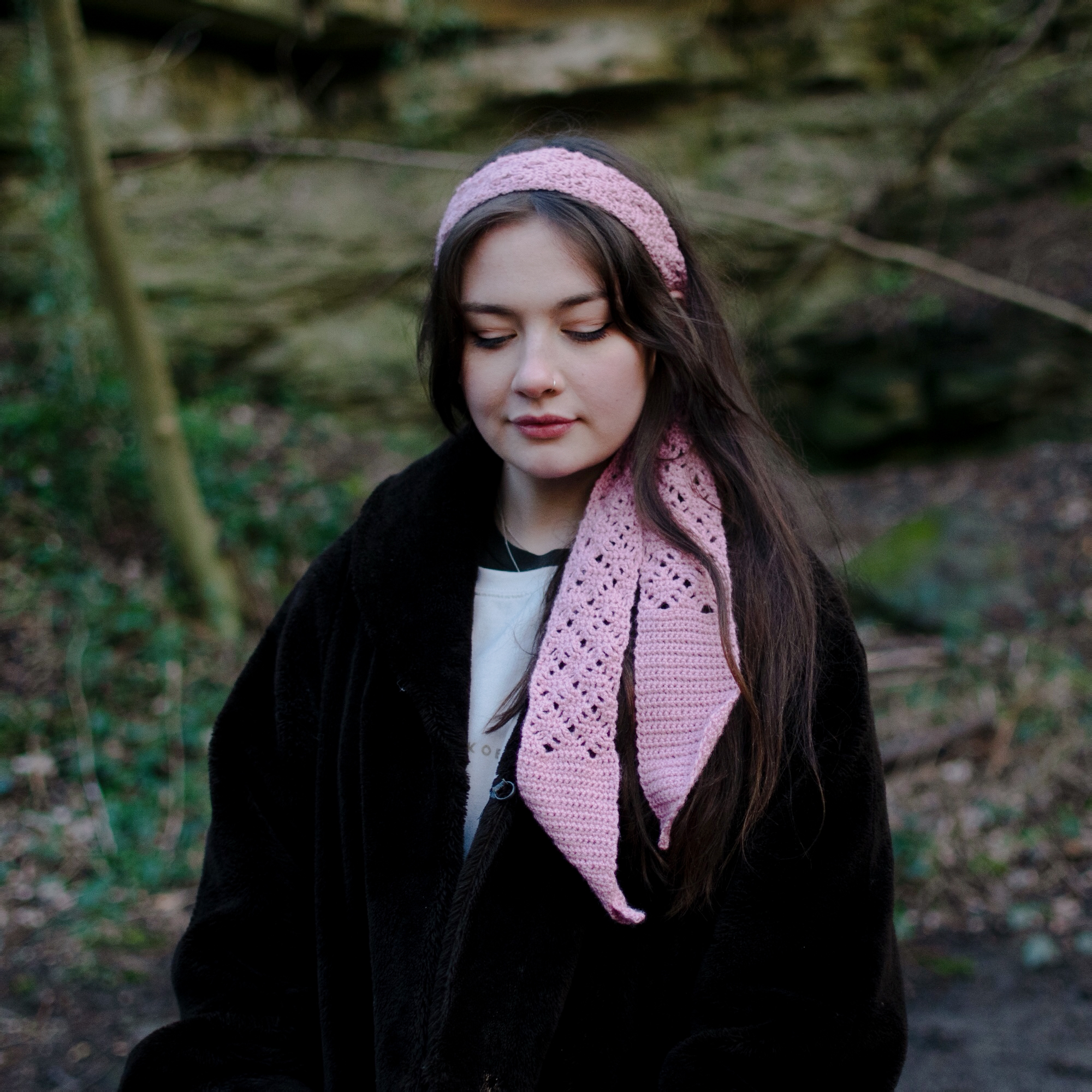 The Lacy Hair Scarf has such a gorgeous lacy texture to it. And you can make it with or without the solid ends. Or make it shorter so it can be wrapped around a bun or pony tail. It makes such a glamorous hairband.