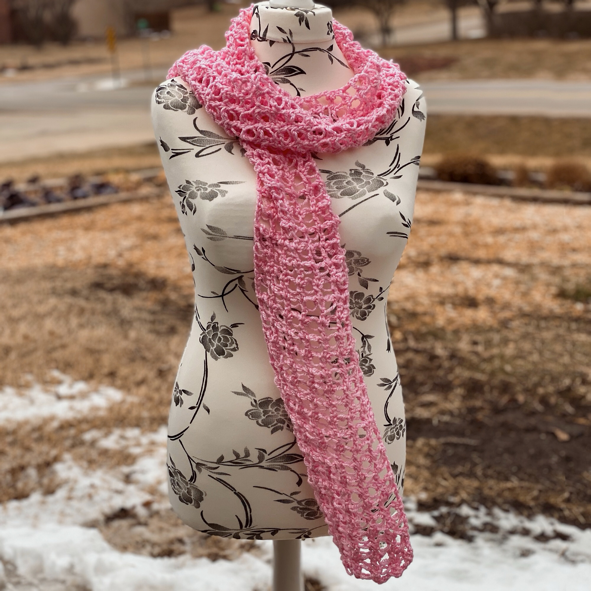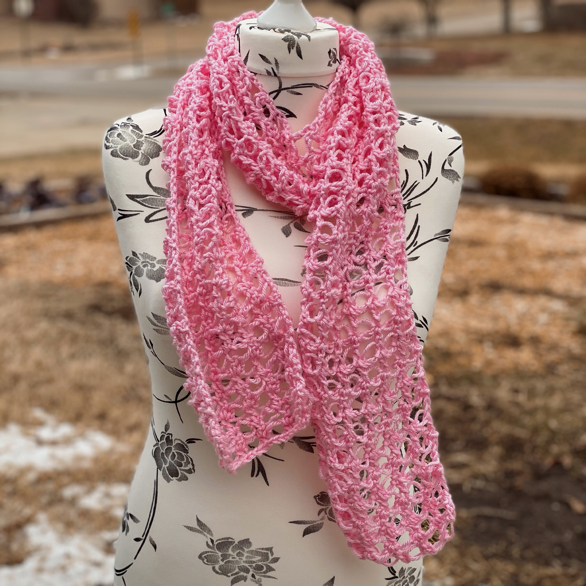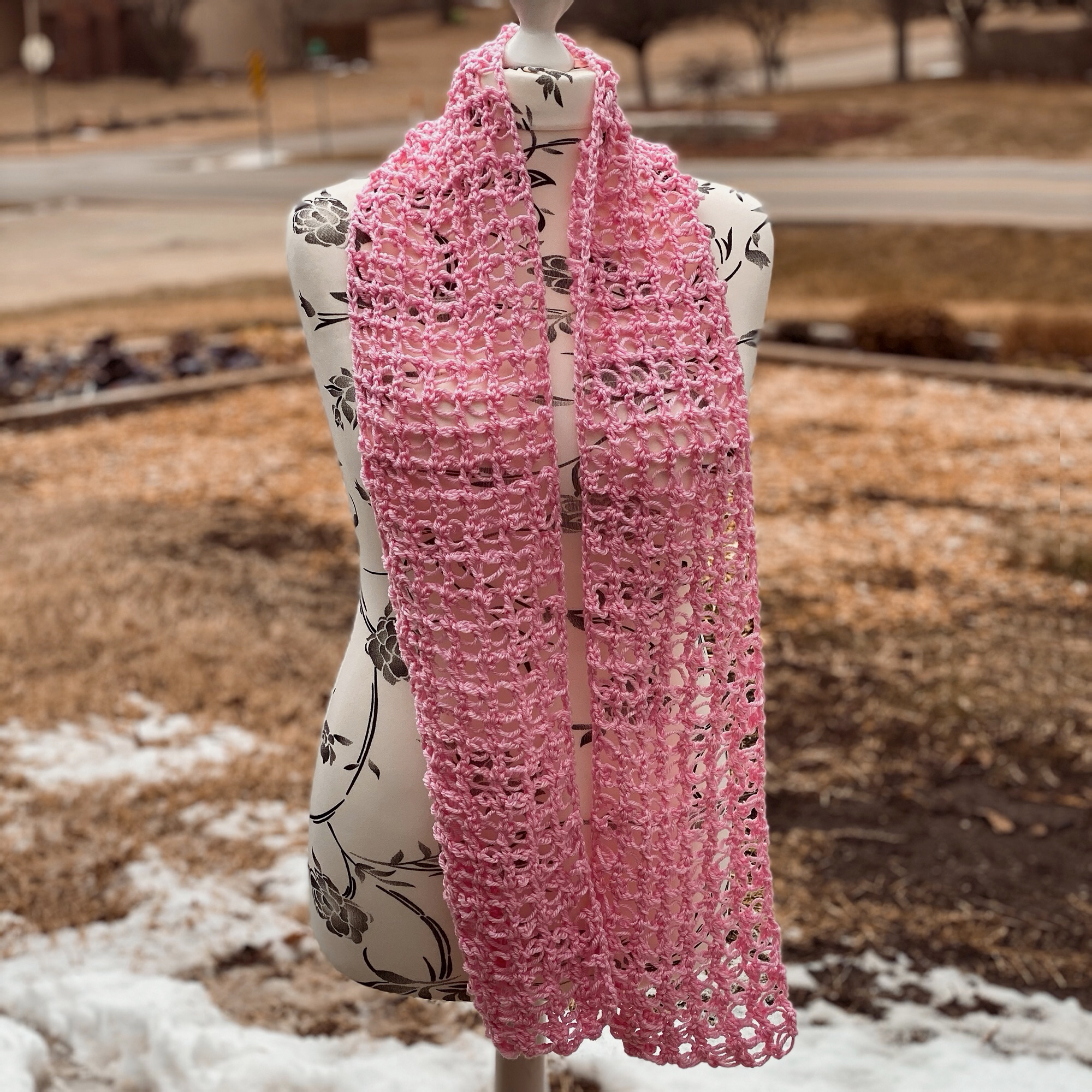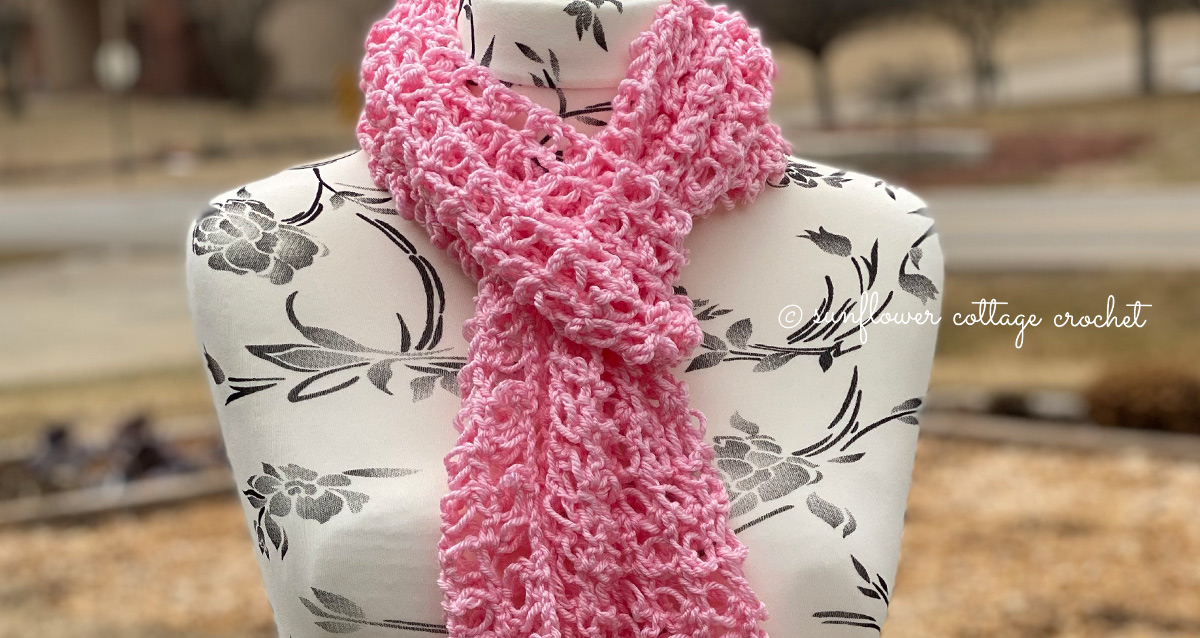 I created this Lacy Solomon’s Grid Scarf pattern with the intention to introduce another way to work the Solomon’s Knot. Making it into a grid by using double crochet stitches, this makes the scarf a lot more stable than the traditional Solomon’s Knot stitch does.