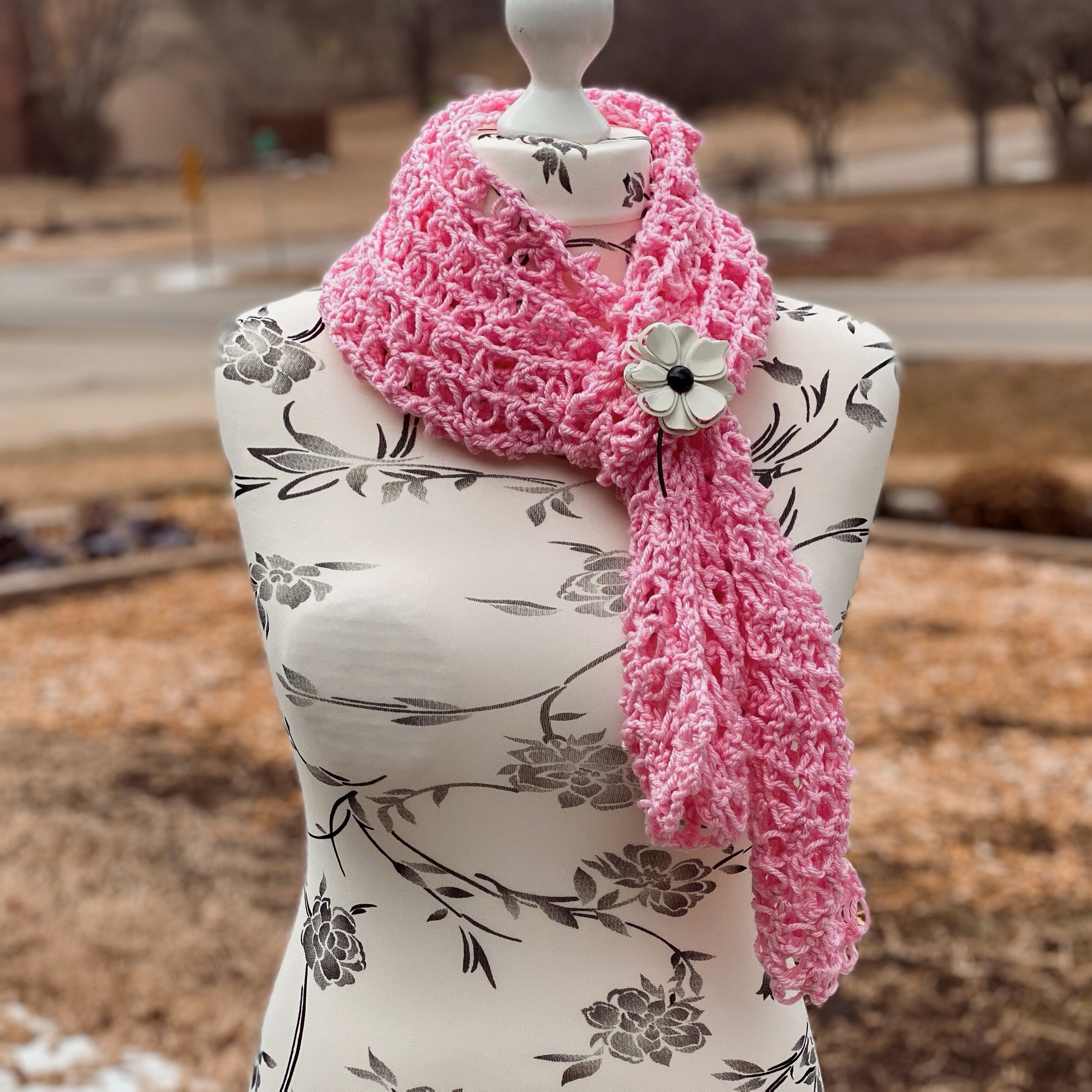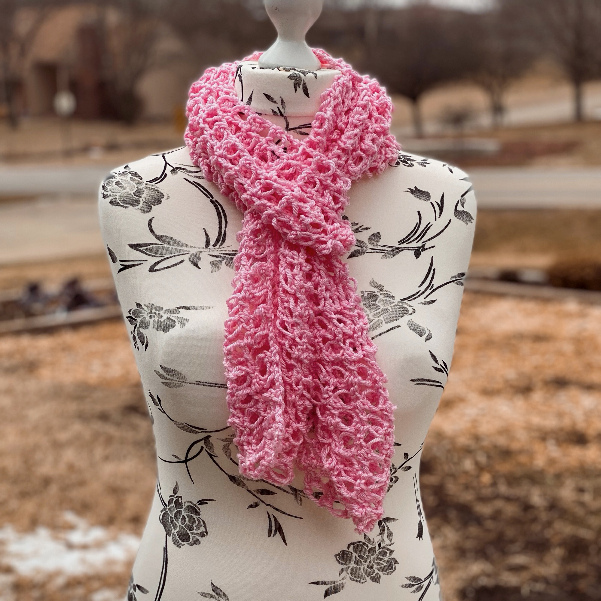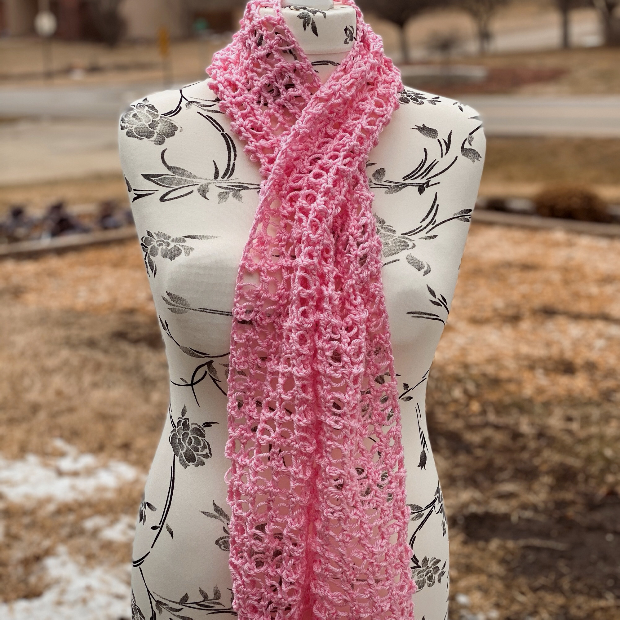 I created this Lacy Solomon’s Grid Scarf pattern with the intention to introduce another way to work the Solomon’s Knot. Making it into a grid by using double crochet stitches, this makes the scarf a lot more stable than the traditional Solomon’s Knot stitch does.