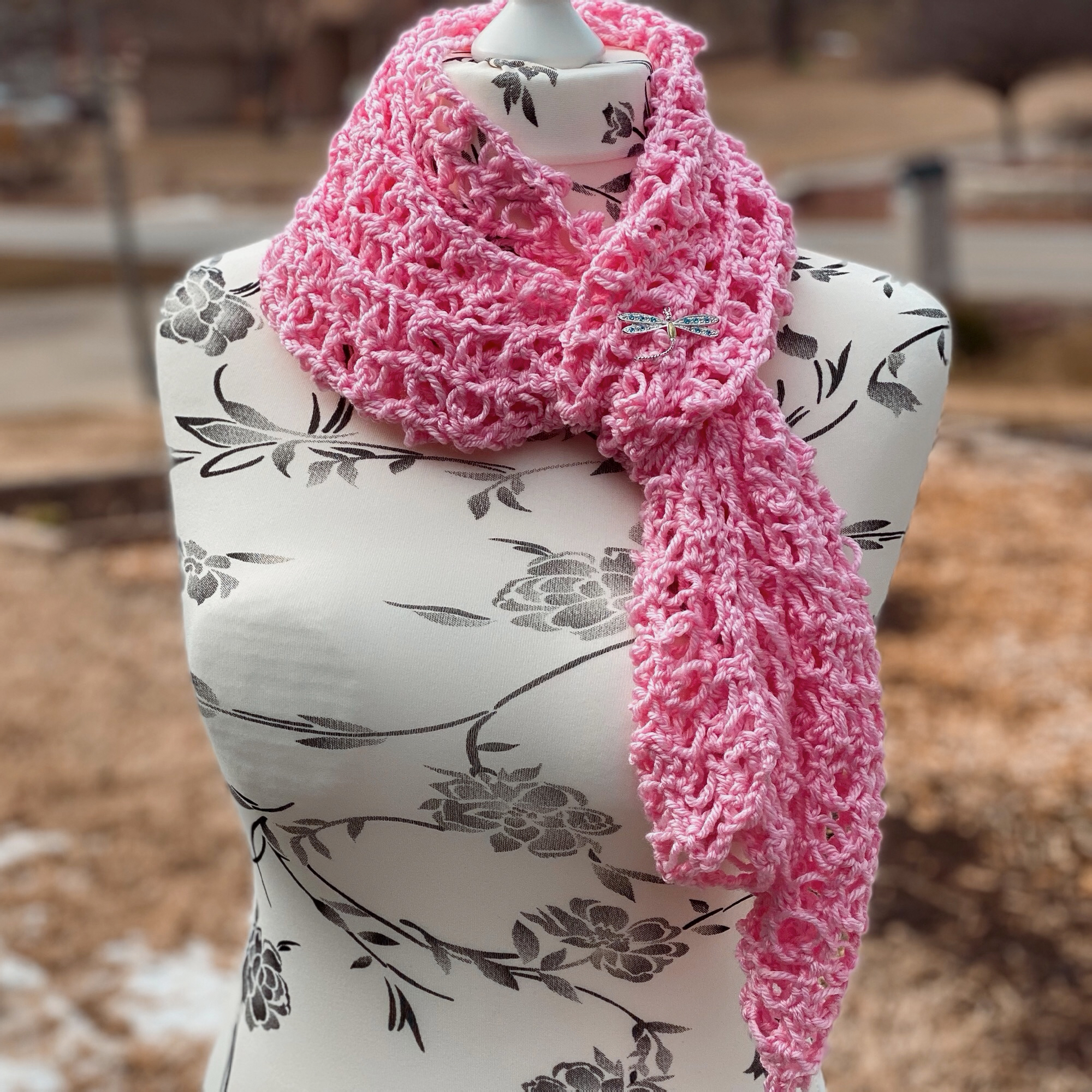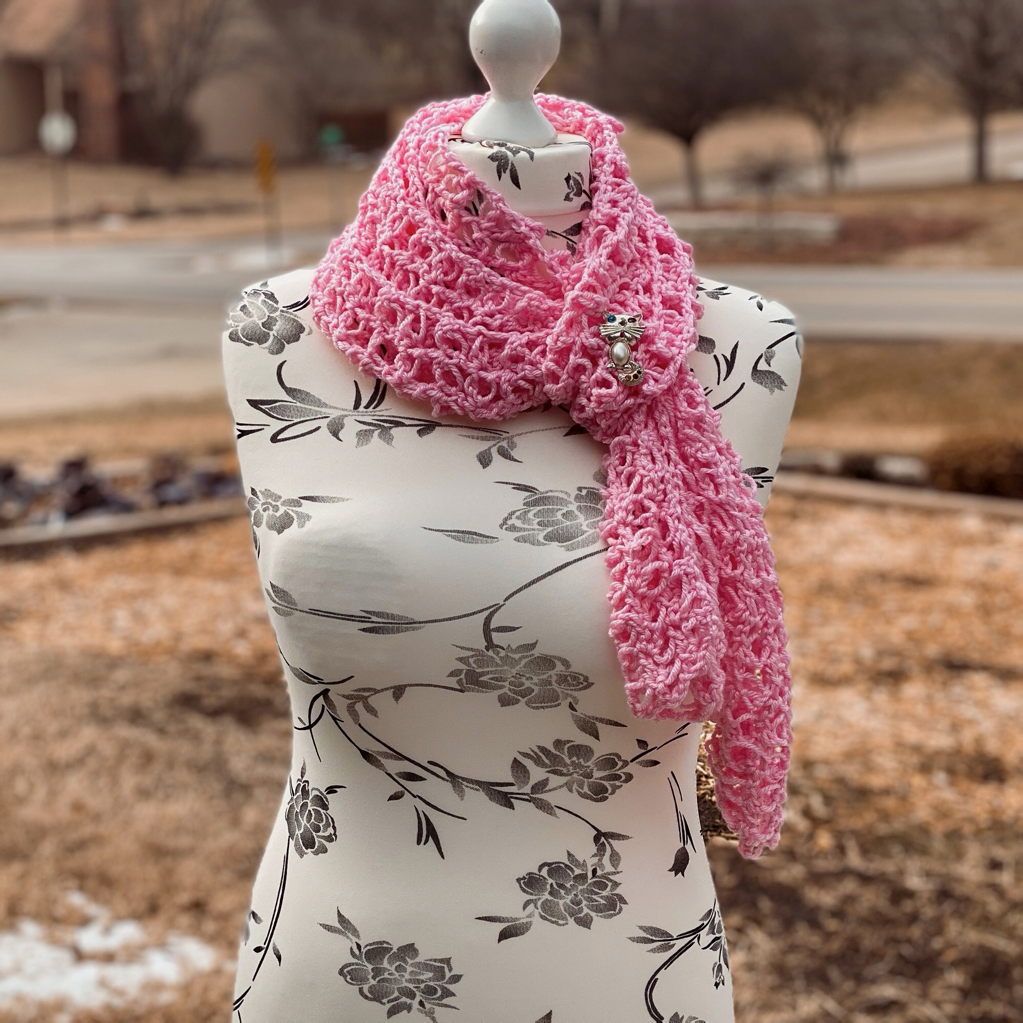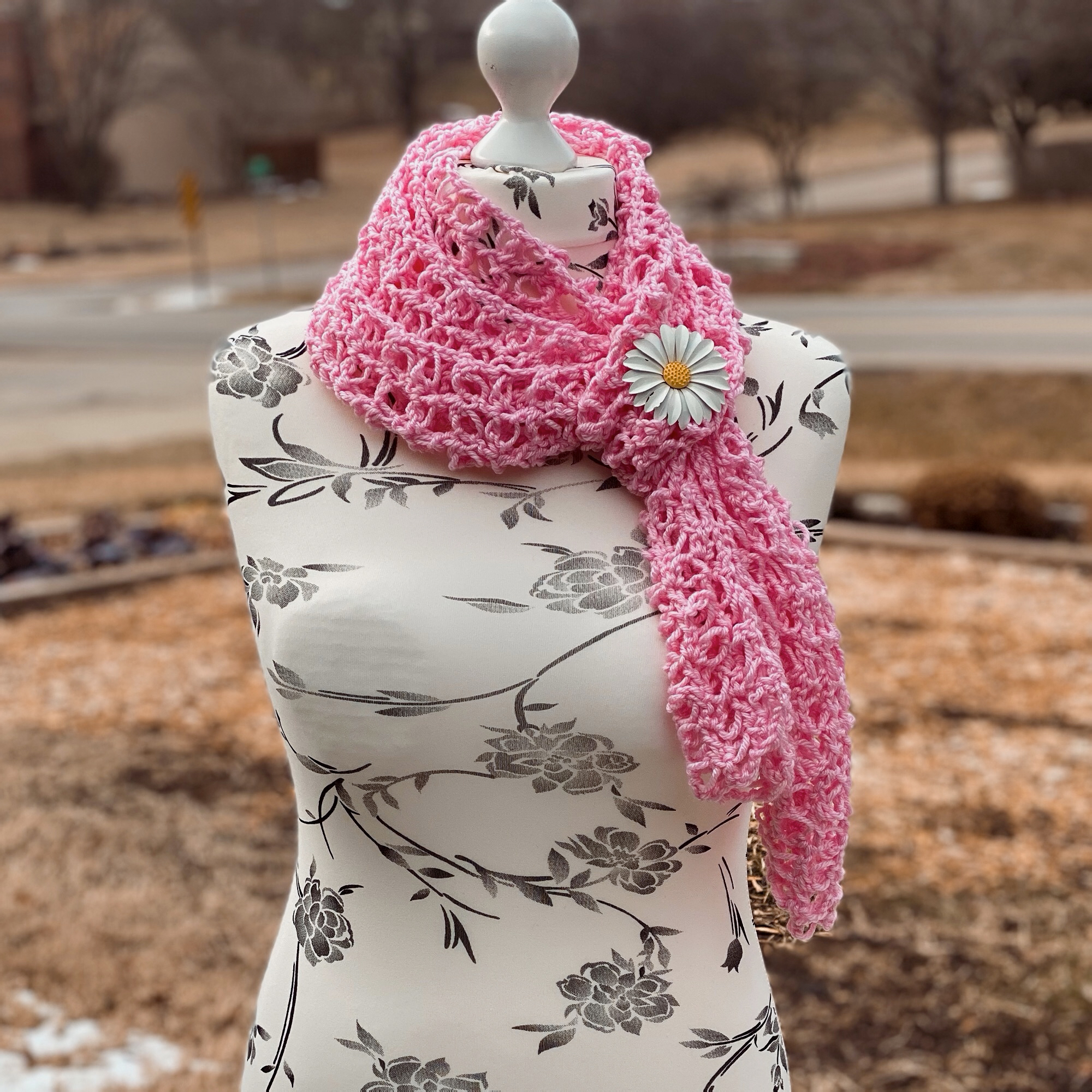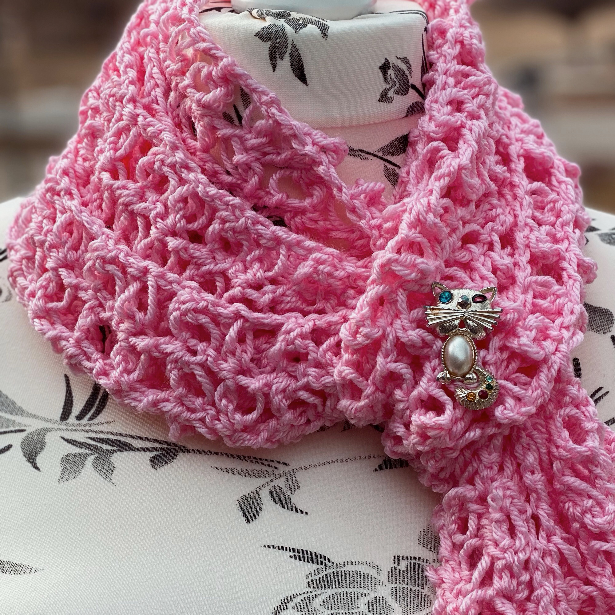 I created this Lacy Solomon’s Grid Scarf pattern with the intention to introduce another way to work the Solomon’s Knot. Making it into a grid by using double crochet stitches, this makes the scarf a lot more stable than the traditional Solomon’s Knot stitch does.