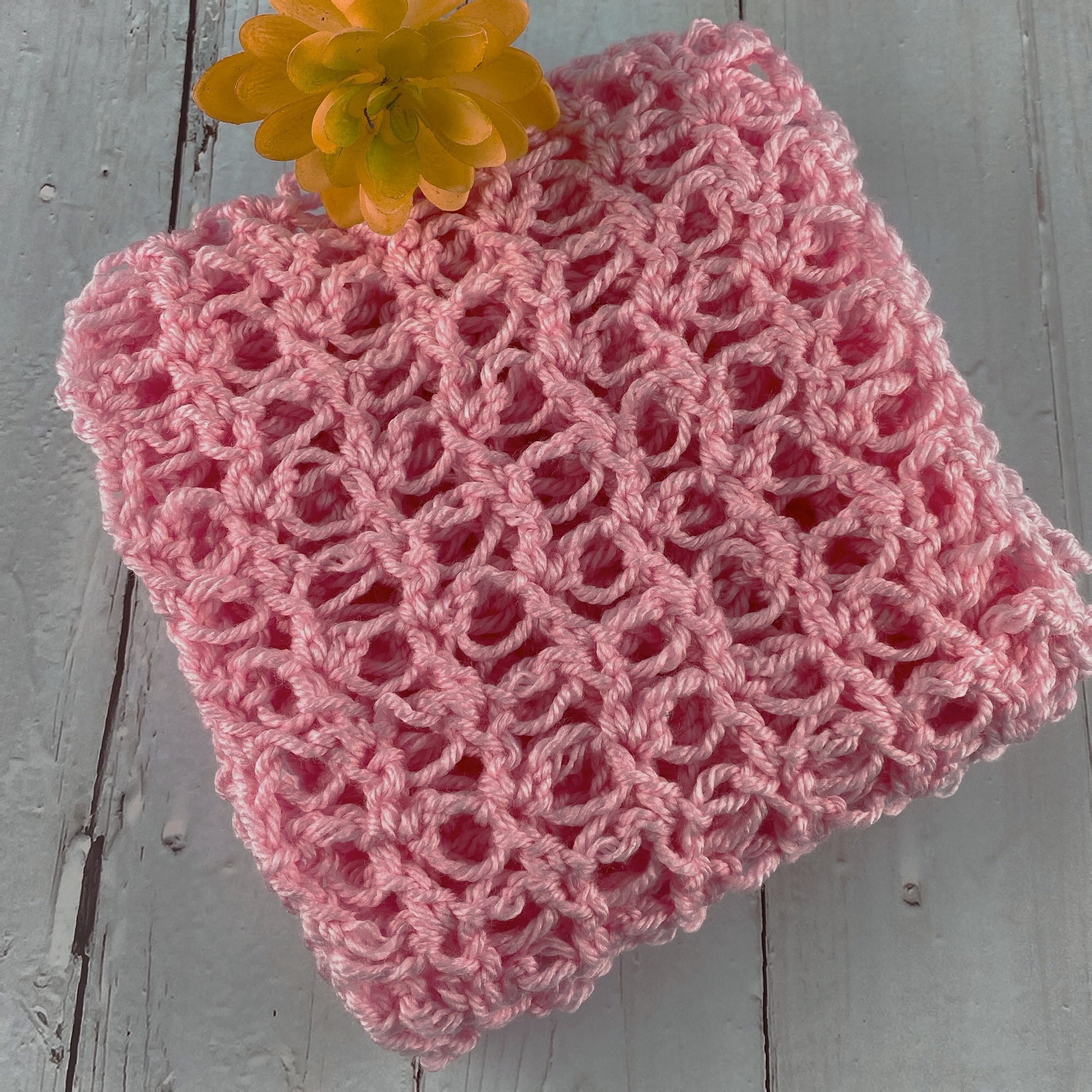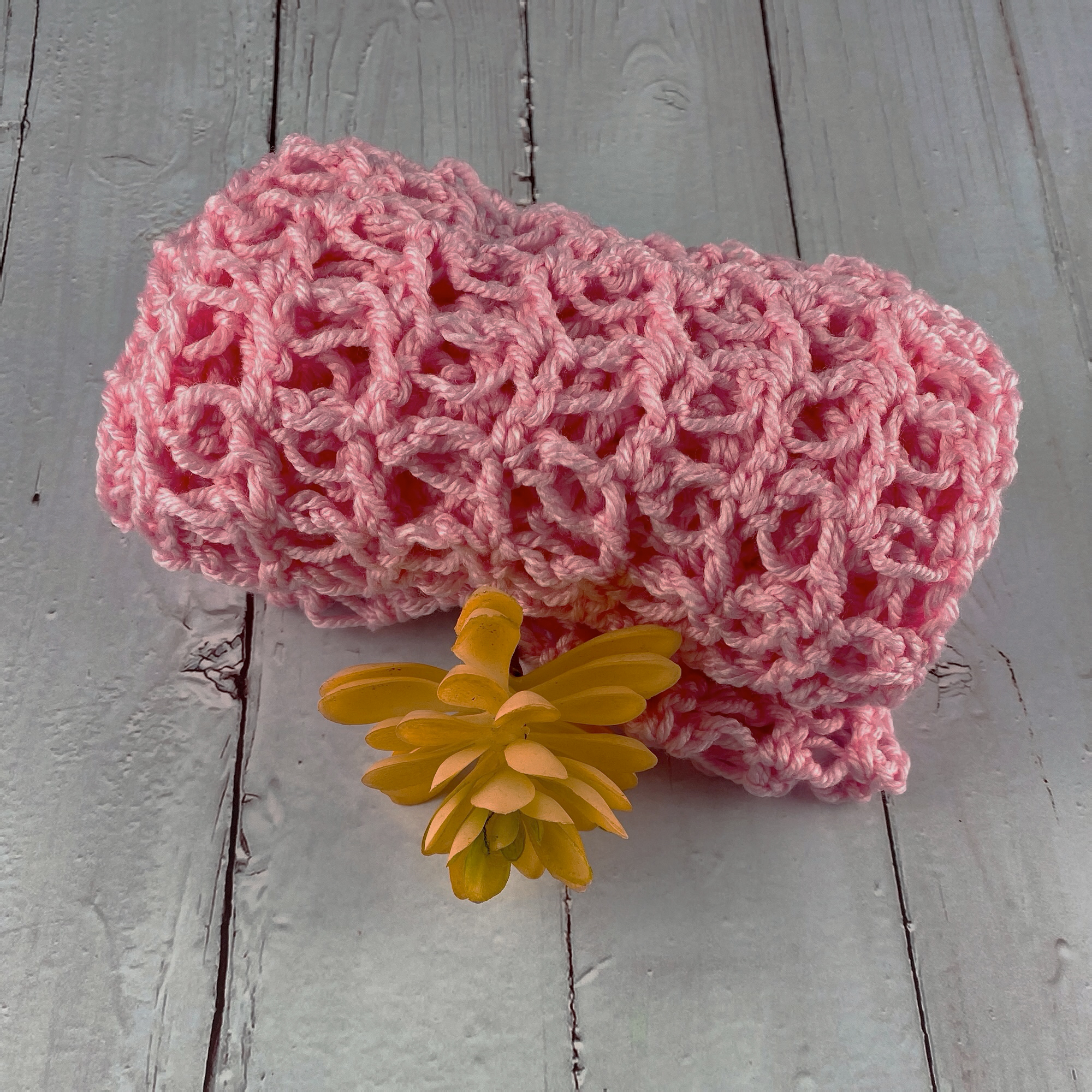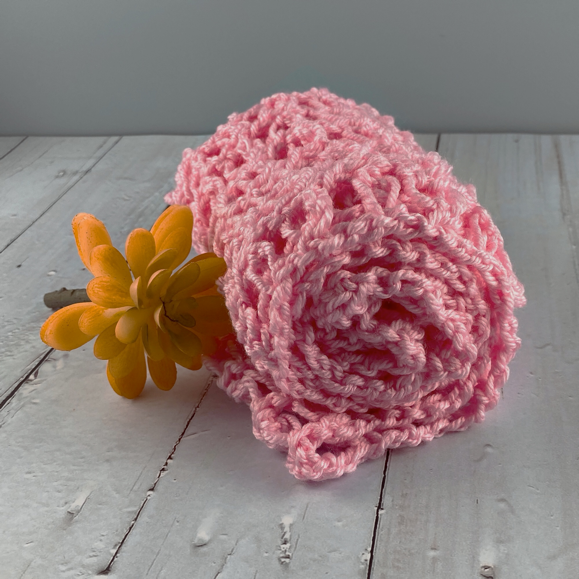 #4 Worsted/Aran weight yarn of your choice–about 1 skein. Such as Knit Picks Brava Worsted, one entire skein OR you can also use DK weight to make it even lighter however, the Solomon’s knot stitch will do that on its own! For DK yarn, I recommend this light and airy CotLin Reflections yarn from WeCrochet.